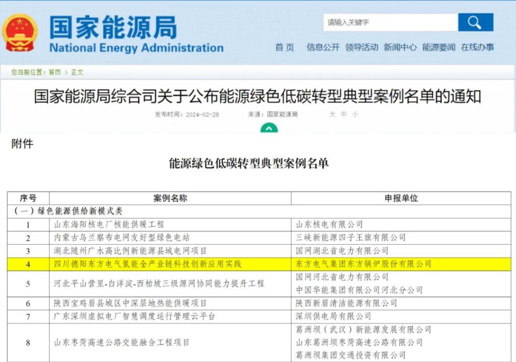 为全面贯彻落实党的二十大精神,深入推进能源革命,加快规划建设新型能源体系,发掘总结并交流推广各地成功经验和有益做法,发挥典型示范引领作用,国家能源局组织开展了能源绿色低碳转型典型案例征集工作。东方锅炉积极响应国家能源局工作要求,认真准备案例申报,经省级能源主管部门推荐、答辩评选、案例核查及评议优选等流程,申报的四川德阳优发国际氢能全产业链科技创新应用实践被收录为能源绿色低碳转型典型案例之一。