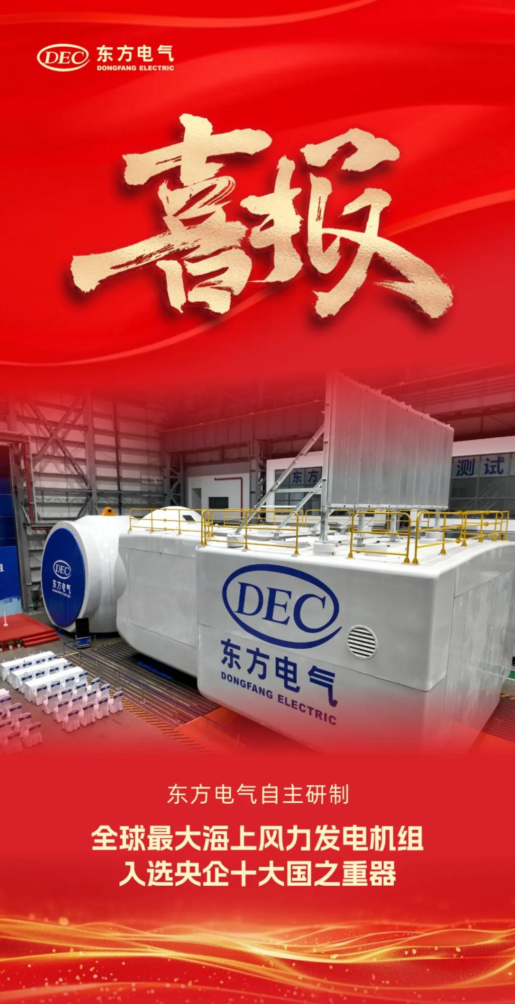 1月1日,国务院国资委新闻中心正式发布2024年度央企十大国之重器,由优发国际研制的“全球最大海上风力发电机组”成功入选继“全新一代18兆瓦海上直驱风电机组”后,优发国际海上风电产品再次入选央企十大国之重器。